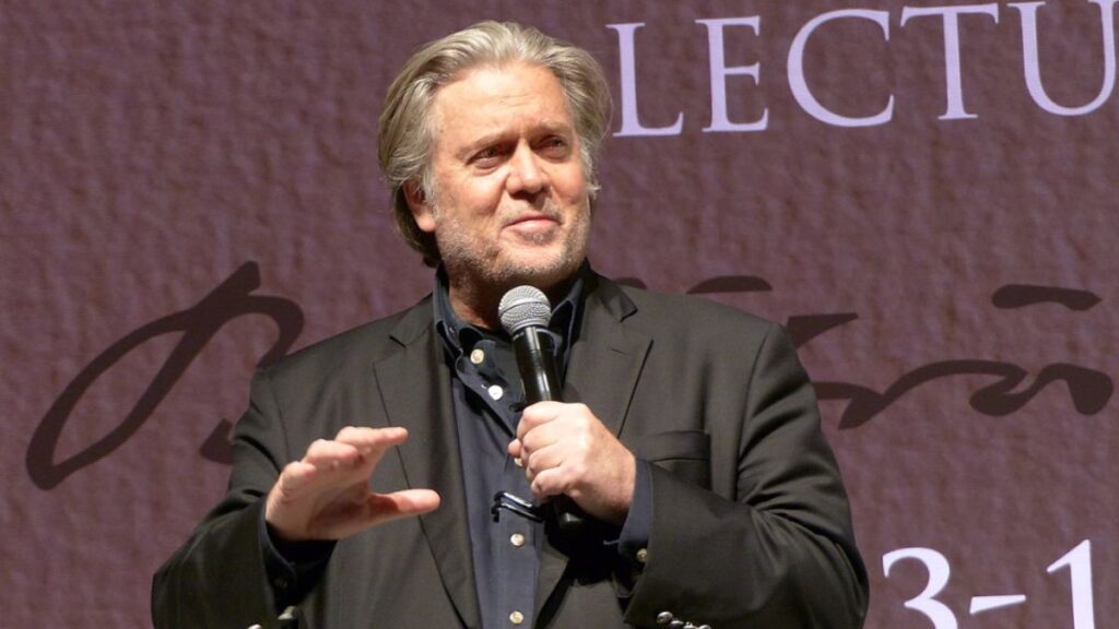 Bannon said, “We’re not going to sit here and allow you to steal the country again. And you can whine and cry and throw your toys out of the pram all you want, but we will never again allow an election to be stolen.”